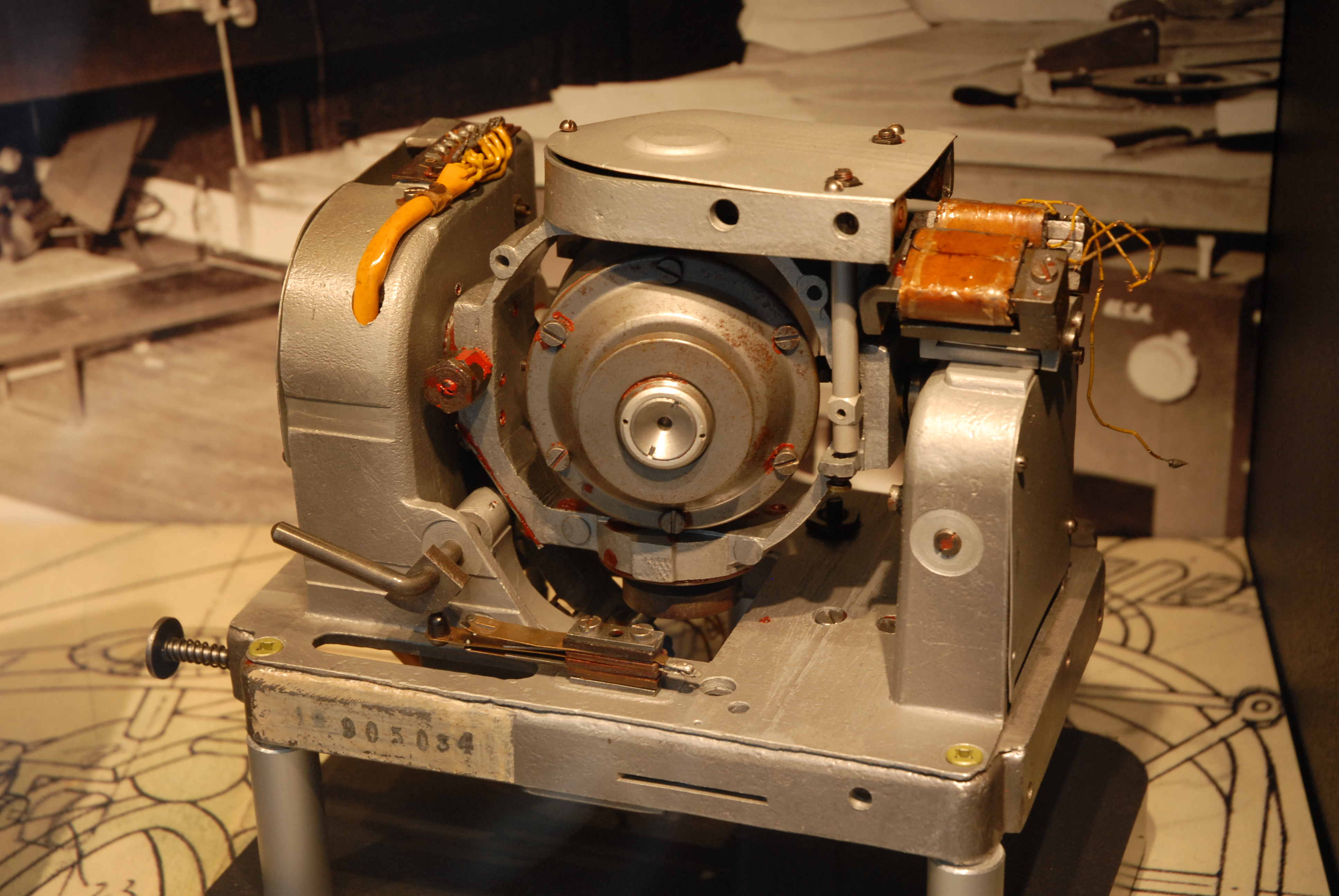 This is a gyroscope from a Redstone rocket. Gyroscopes were used for attitude control during the boost phase of the flight. | ||